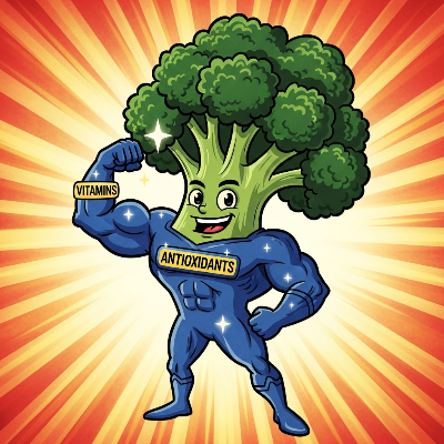 - 왜 좋은가? 브로콜리는 비타민 A, C, E와 섬유질, 항산화제가 풍부하다. Journal of Clinical Biochemistry and Nutrition (2024) 연구는 브로콜리의 설포라판이 면역 세포 활성을 높인다고 밝혔다.